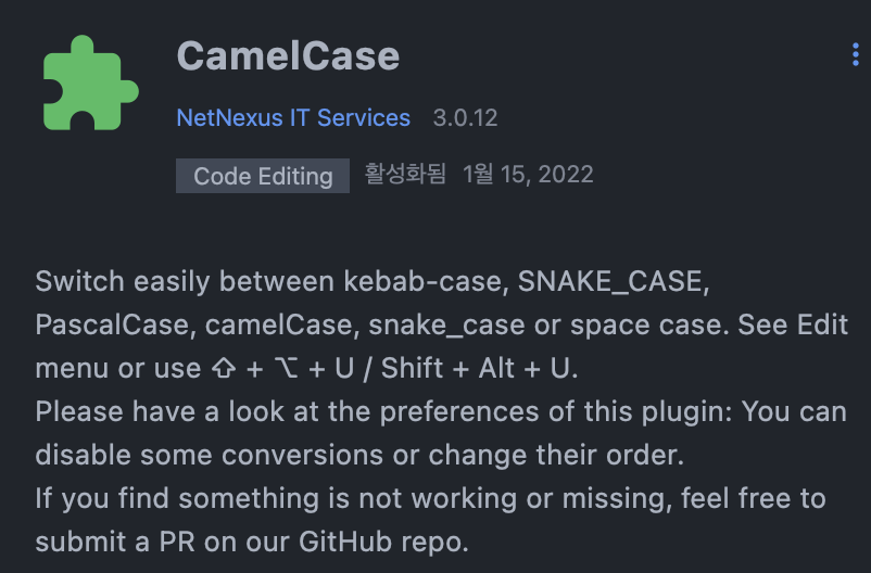 일단 플러그인의 설명을 보면 단축키는 윈도우나 맥 기준 쉬프트 알트 U라고 쓰여있다