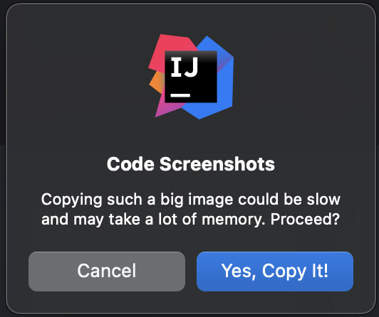약간의 긴 코드를 복사할때 이런 팝업이 뜬다. 컴퓨터의 메모리, 특히 인텔리J의 메모리를 순간적으로 많이 먹는것 같다.