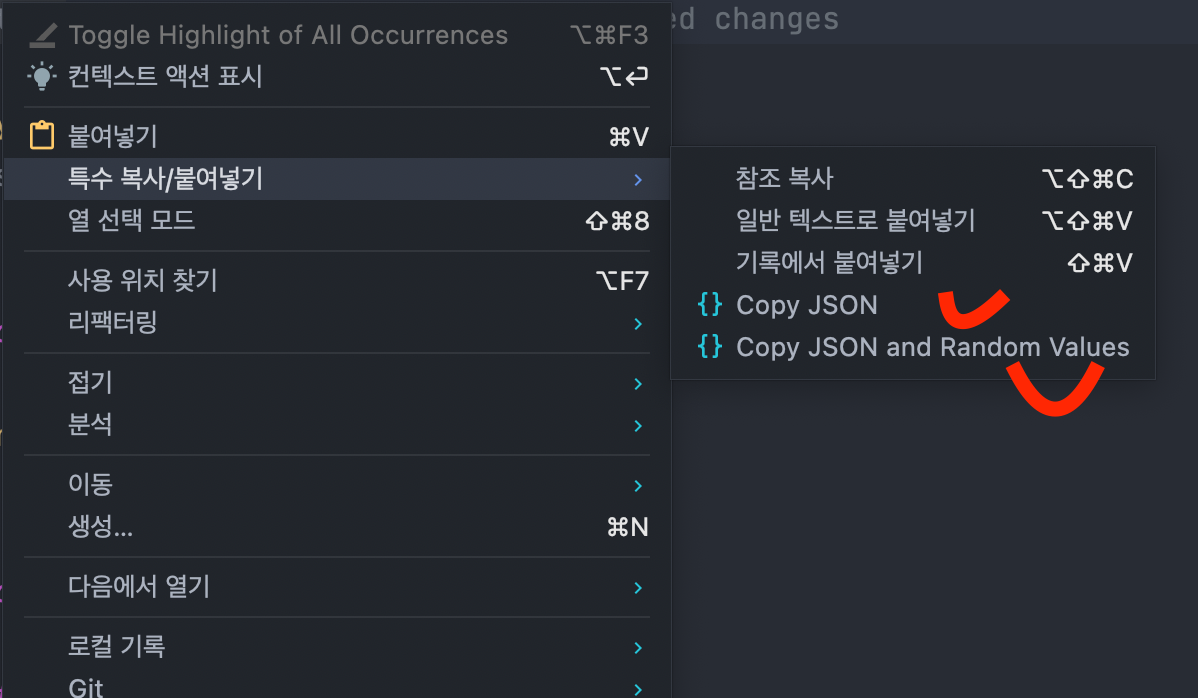 그럼 DTO from JSON이라고 뜨는데 이것을 클릭해주자
