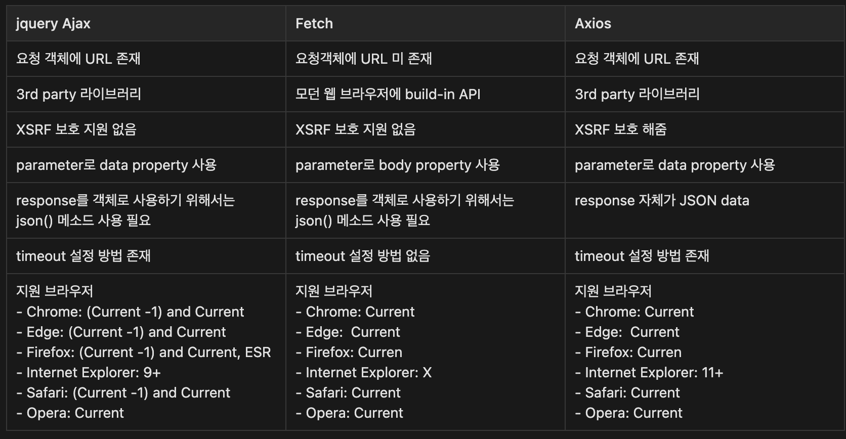 Ajax, Fetch, Axios 3대장이 있다