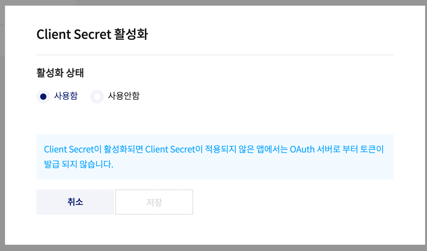 보안 탭의 Client Secret 코드 - Client Secret