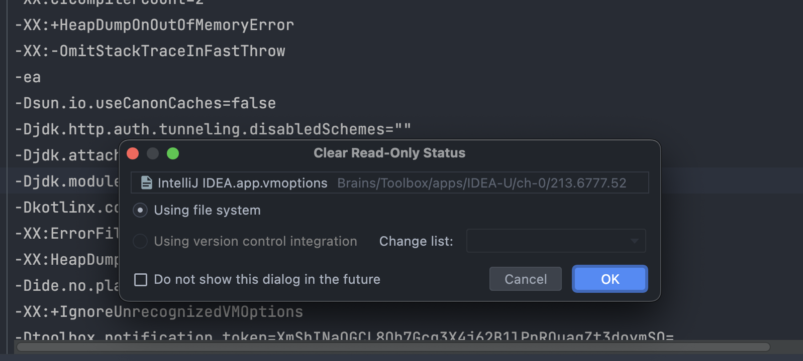 정말 안정적인 config나 properties나 IDEA setting 실수로 변경되지 않아야 하는 파일은 read-only로 만들어야 하지않은가?