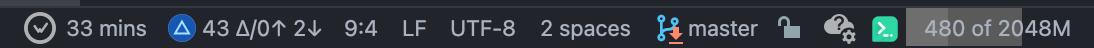 맨 오른쪽 하단에 메모리 사용량이 나온다 ^^ Very Good
