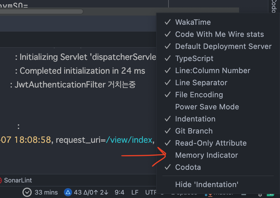 그리고 인텔리제이가 메모리를 얼마나 사용하고 있는지 보는 꿀팁은