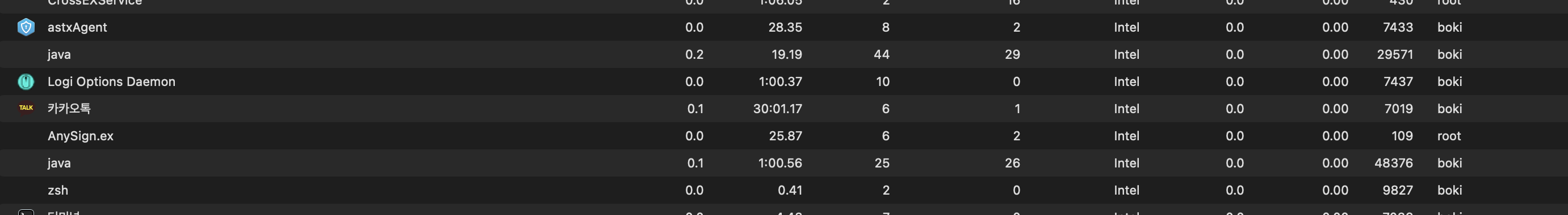 Command + Space를 눌러 Spotlight 커맨드 바를 오픈한 후 활성 상태 보기를 입력한다