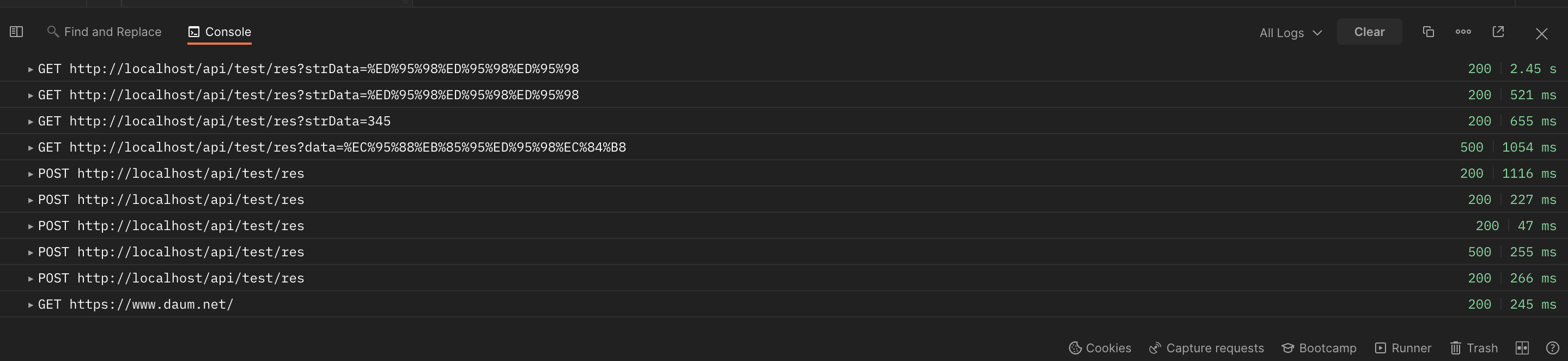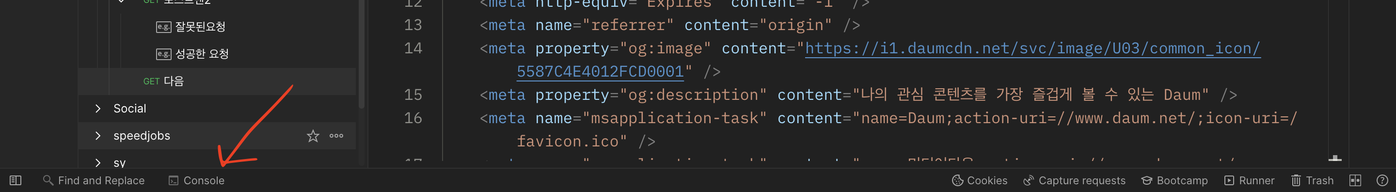 포스트맨 하단에 보면 Console이라고 보일 것이다