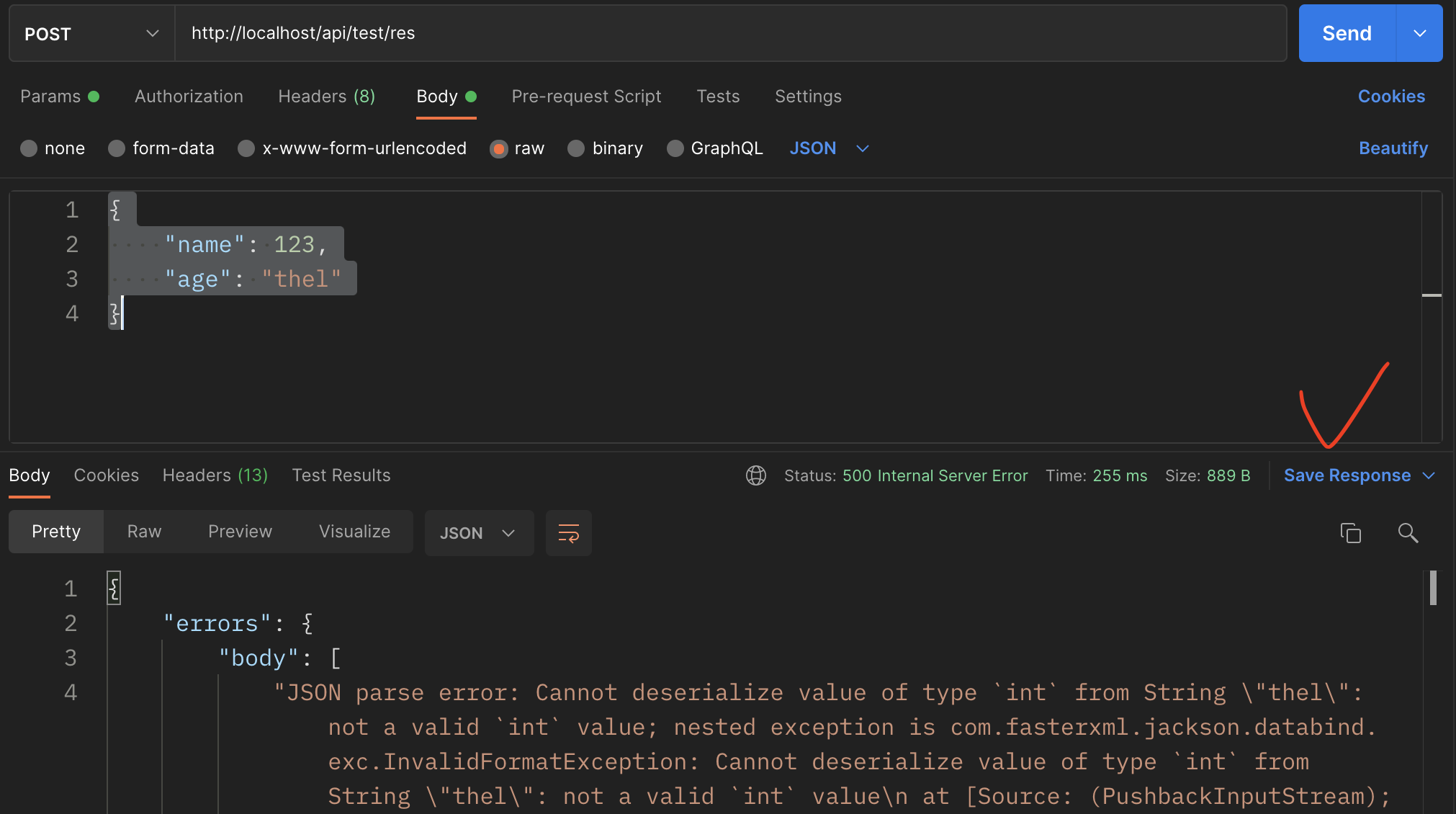 그럼 이제 우리는 프론트팀이 잘못된 요청을 보낸 결과와 성공한 결과를 예시로 2개 갖고있게됐다