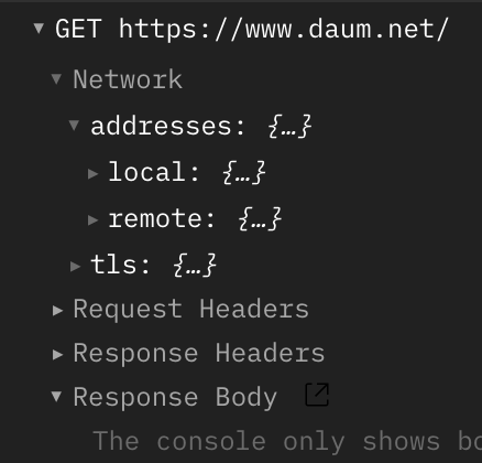 포스트맨 요청을 보내고 응답에서 아래 지구본 모양을 클릭하면 간단하게 네트워크 상태를 알 수 있다