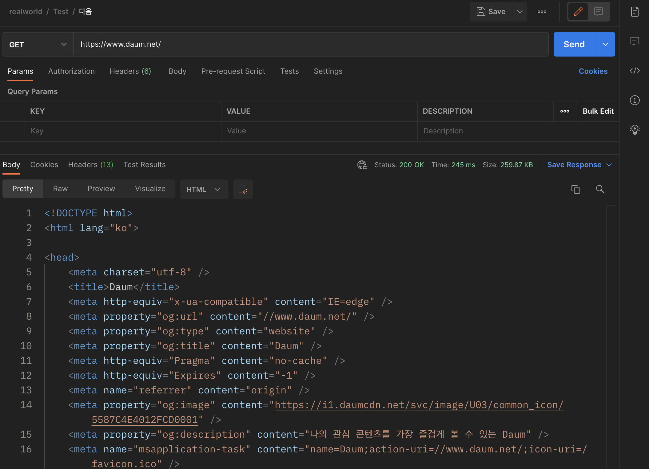 기대한 대로 성공했다. 그럼 이 성공한 요청도 저장해보자