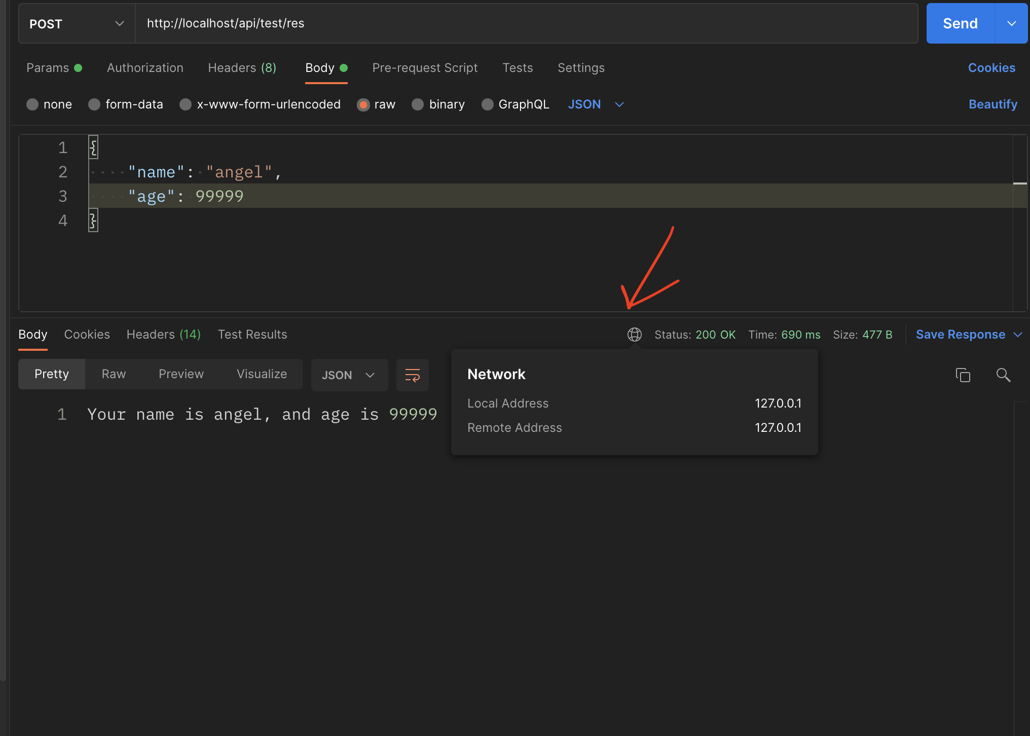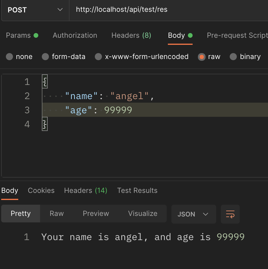 Post /api/test/res 요청으로