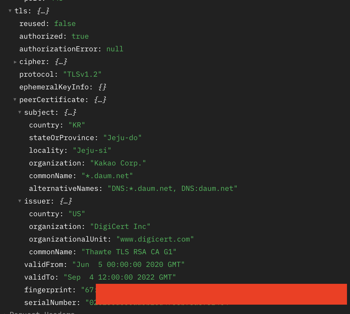 그리고 tls의 인증 기관은 digicert.com에서 받은 정보를 알 수 있다