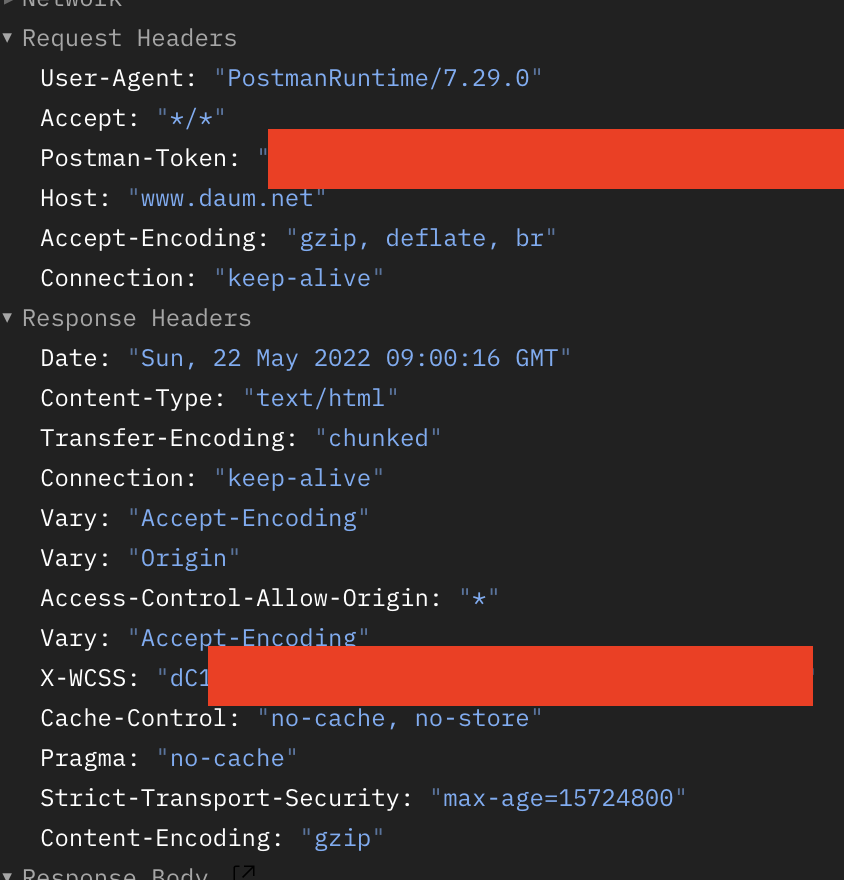 네트워크, 요청 헤더, 응답 헤더, 응답 몸통