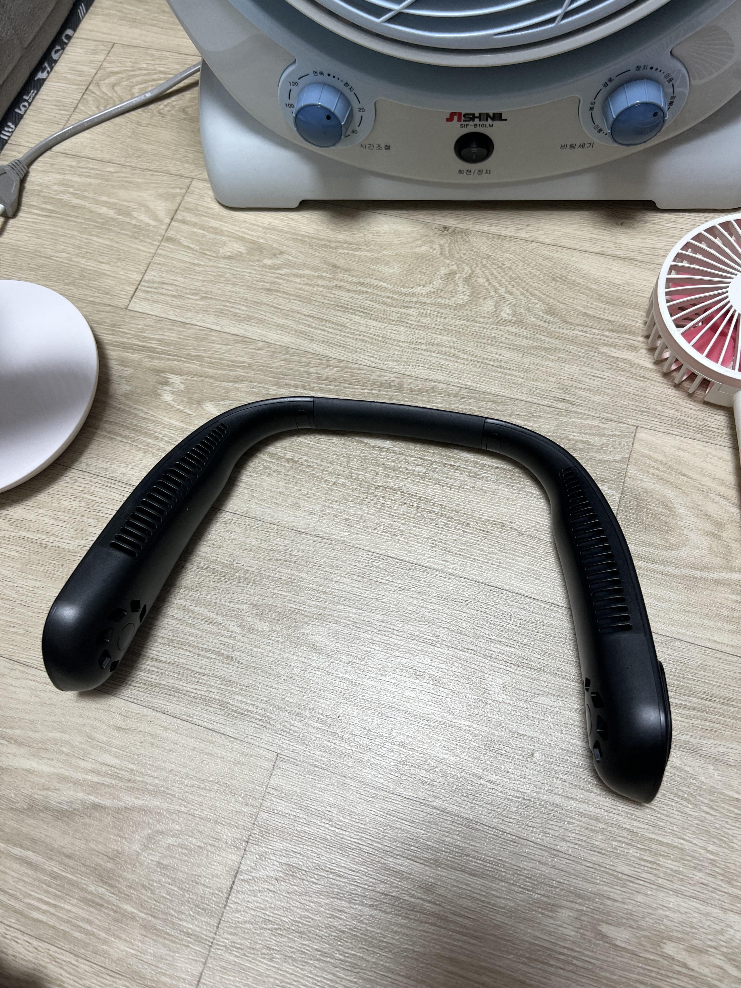 목에다 거는거라 양쪽 볼따구에 닿을 일은 없지만(선풍기가 한참 아래..)