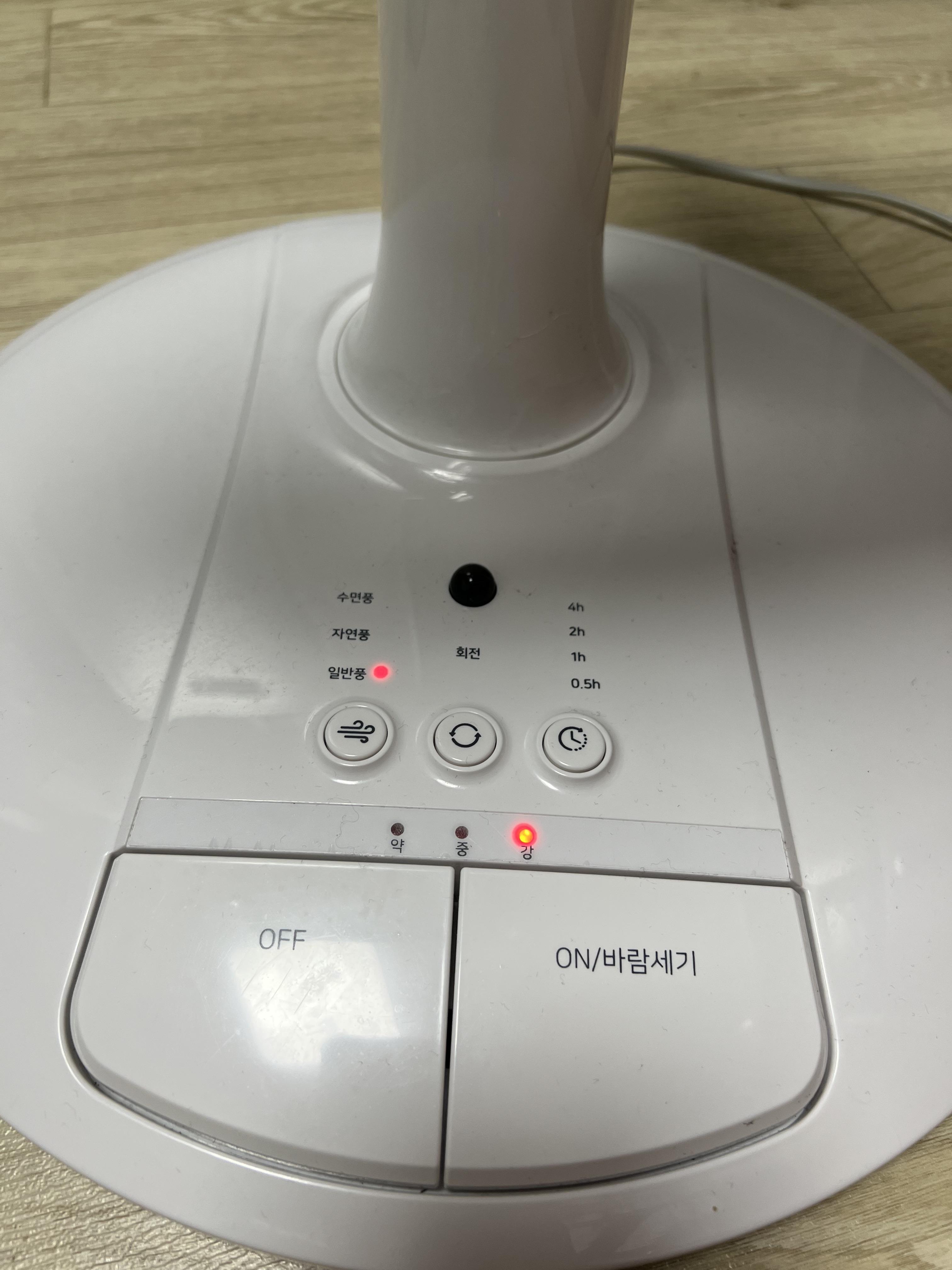 직관적이게 왼쪽이 끄는것, 오른쪽이 키고, 계속 누를수록 바람세기가 변한다
