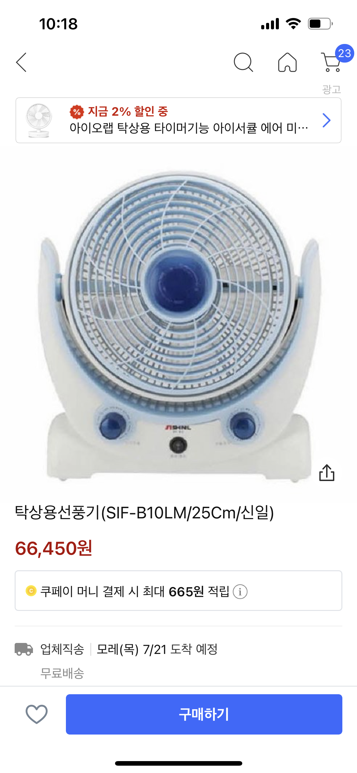 바로 22.07.19일에 배송이 온 선풍기이다. 아마 18일 저녁쯤에 주문했던거 같다..
