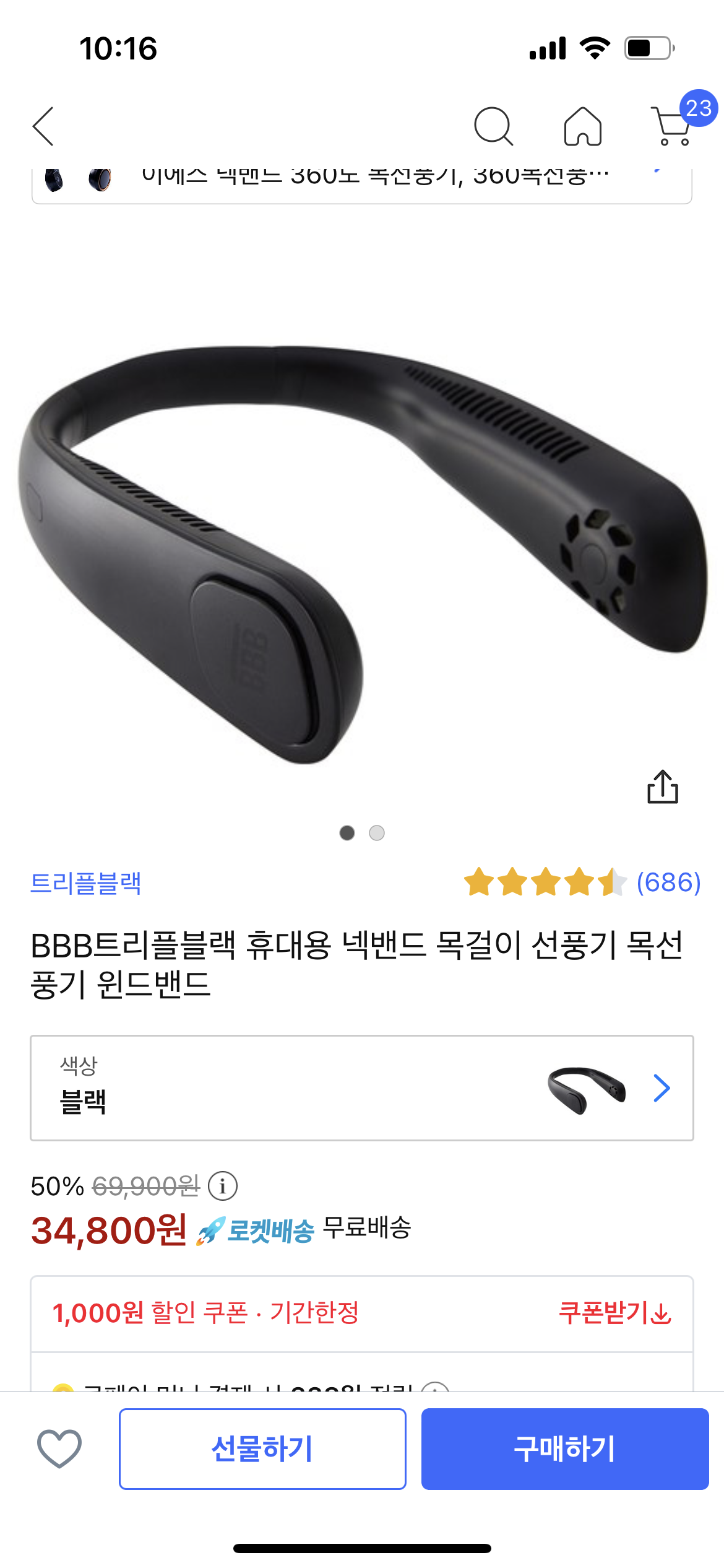 이동할때 목에 걸고 다니는데 크게 무겁지도 않고 시원한편이다