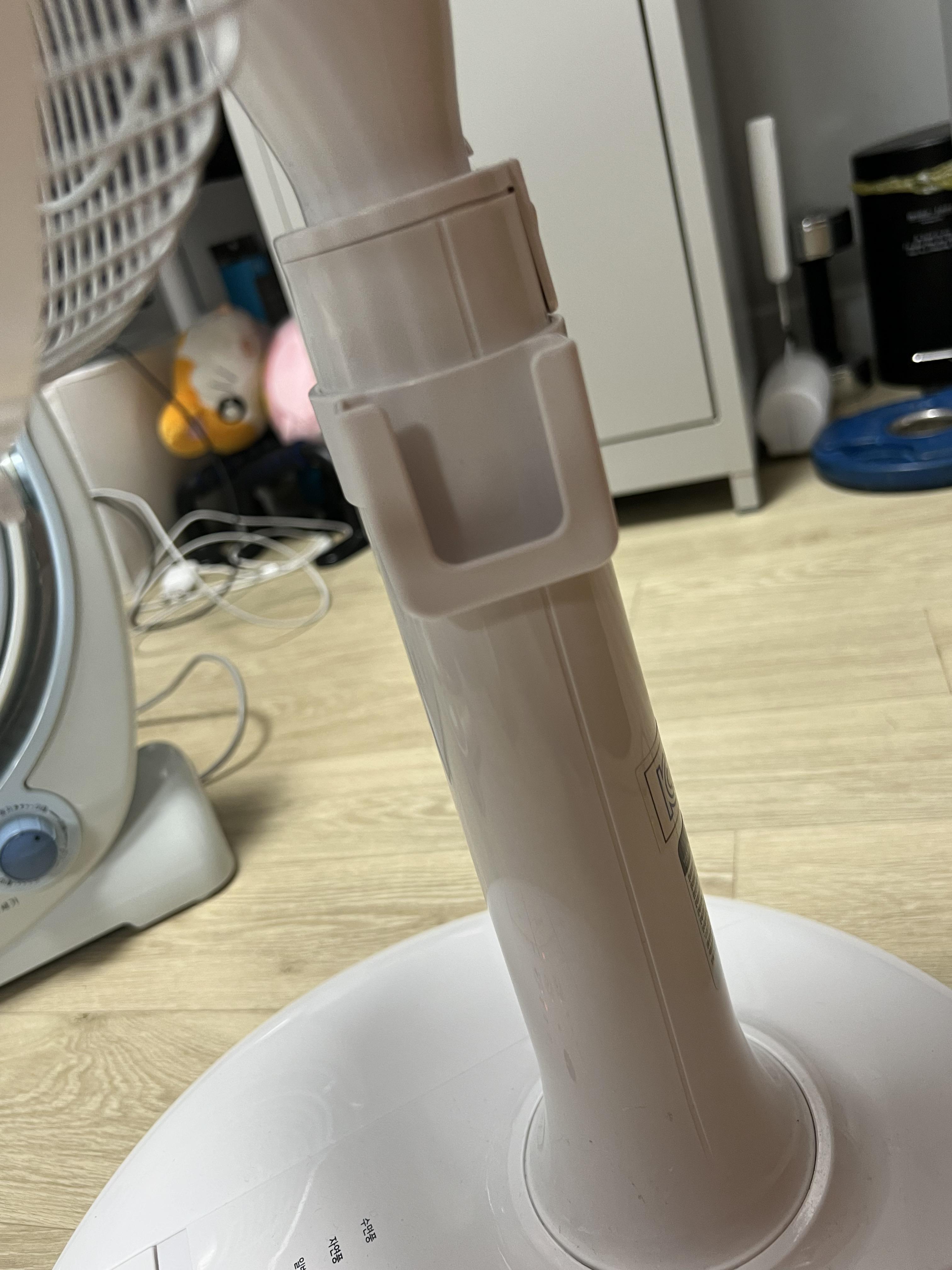 참고로 선풍기 목에 리모콘 거치대도 달려있어서, 리모콘을 사용하지 않을때 거치해 둘 수도 있다
