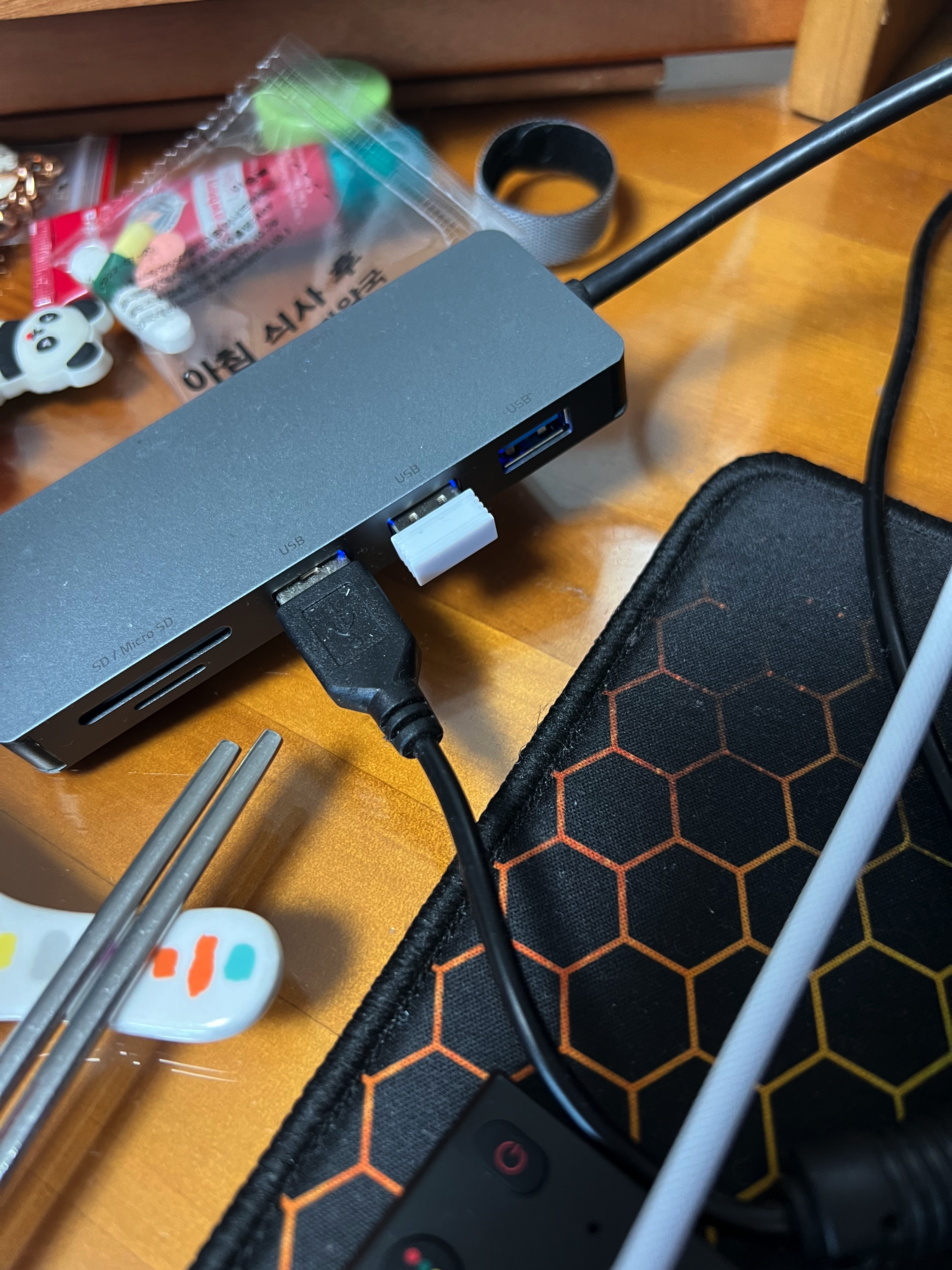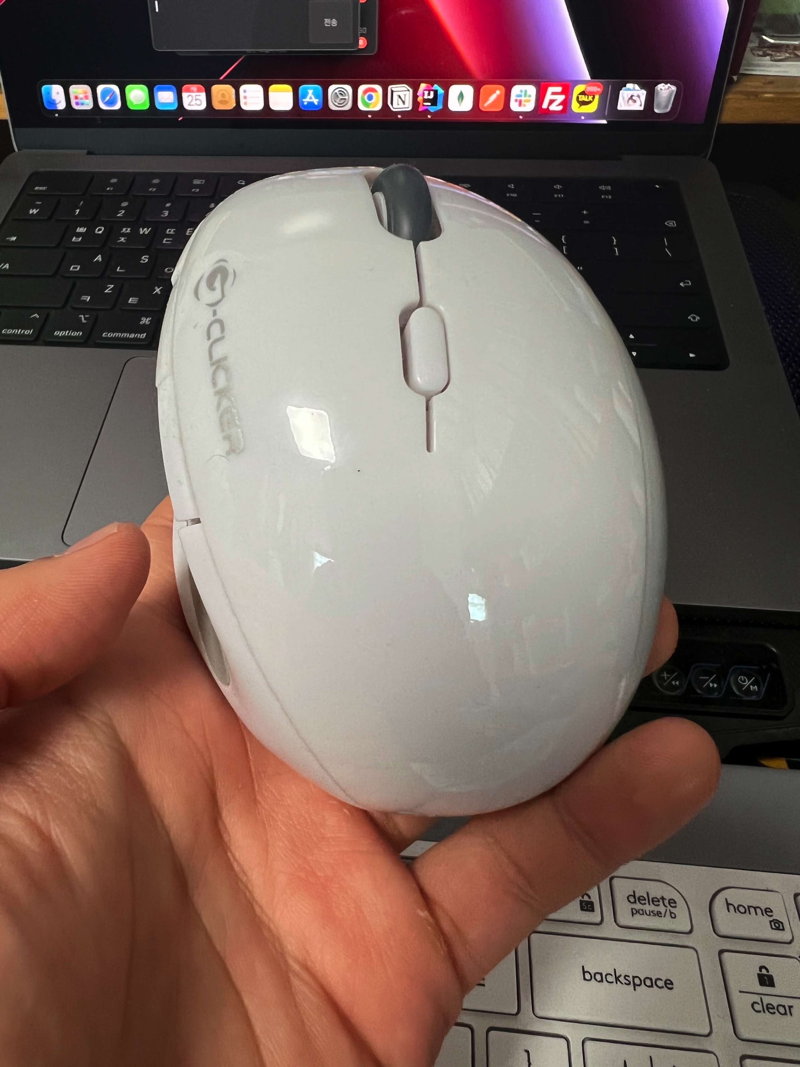 그래서 윈도우에서 쓰던 usb수신기 달린 싼마이 버티컬 마우스를 쓰려고 했는데