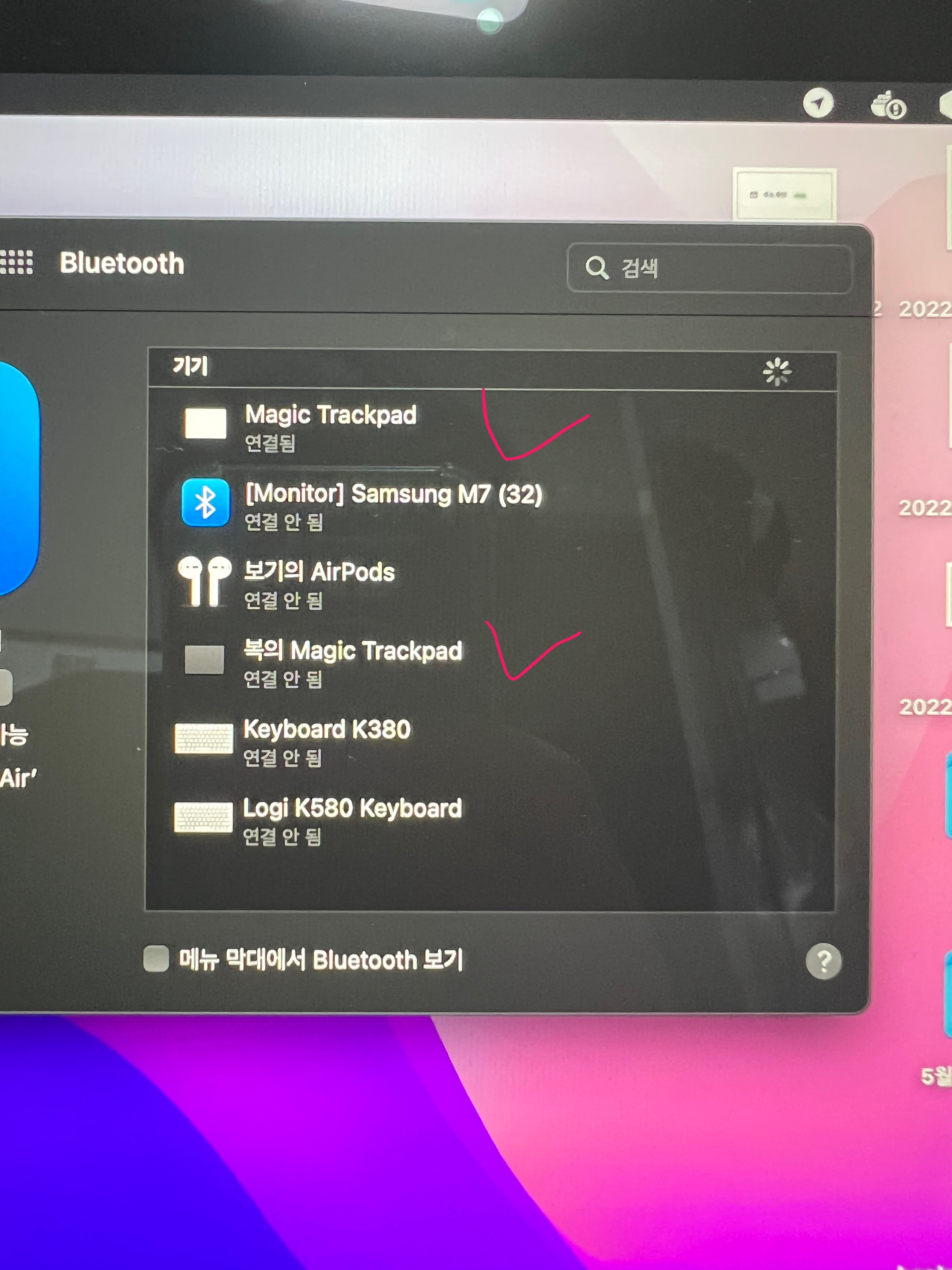 또 최근에 맥북프로가 생겨서 거기에 스페이스 그레이 트랙패드를 페어링시키니깐