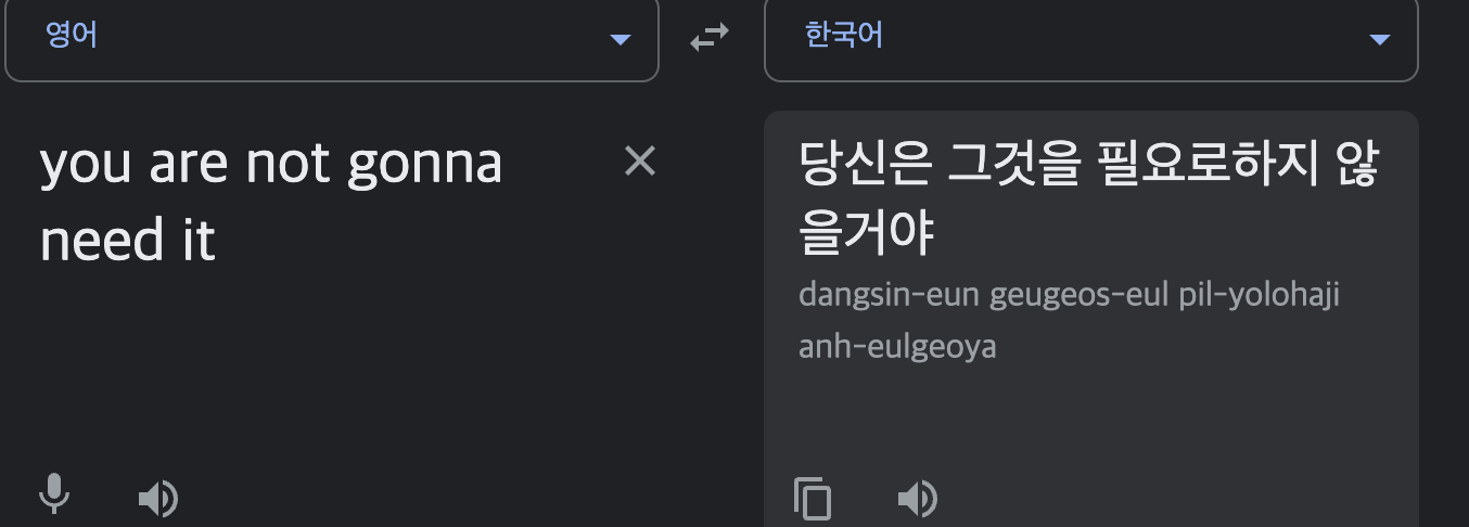 You Ain't(Are not) Gonna Need It 의 앞글자를 따서 만든 약어이다