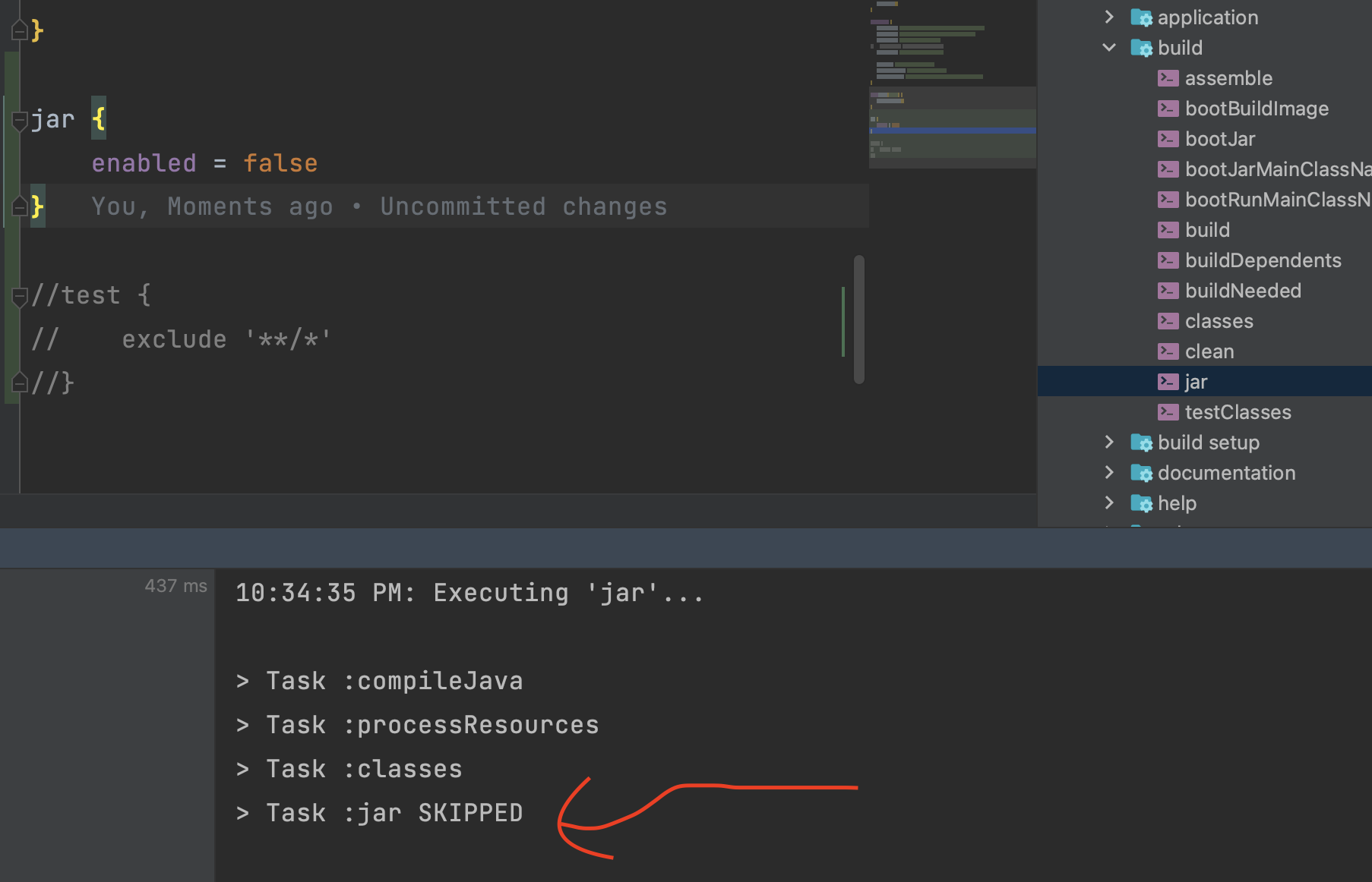 어..? jar 가 스킵되었다고 나왔다 그럼 build 폴더를 살펴보자