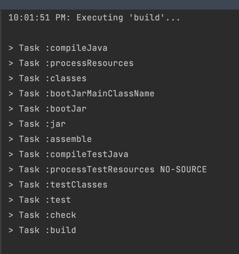 이건 intelliJ가 해주는 빌드다. 인텔리제이가 Gradle의 Build Task를 모두 해주는 것은 아니다!