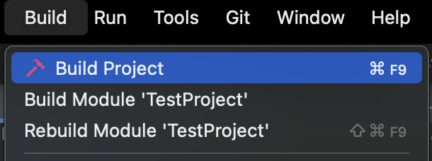 인텔리제이 빌드 옵션 탭에서 Build Project를 눌러주자
