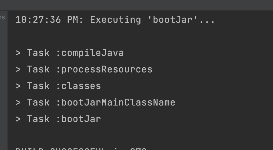 bootJar(FatJar)의 태스크는 전체 빌드보다 간소화되었지만 실행에 필요한 모든 작업을 처리해서 아카이빙 파일을 만들어준다