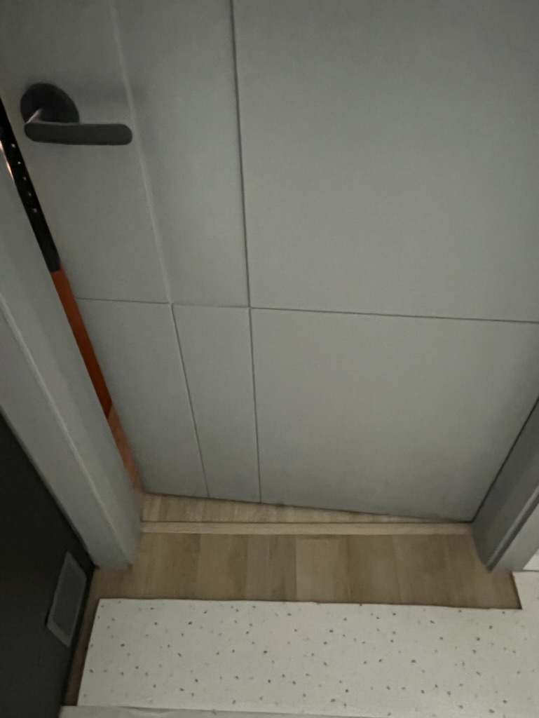 거실에서 볼때 왼쪽 아래에 빛이 살짝 새어나간다