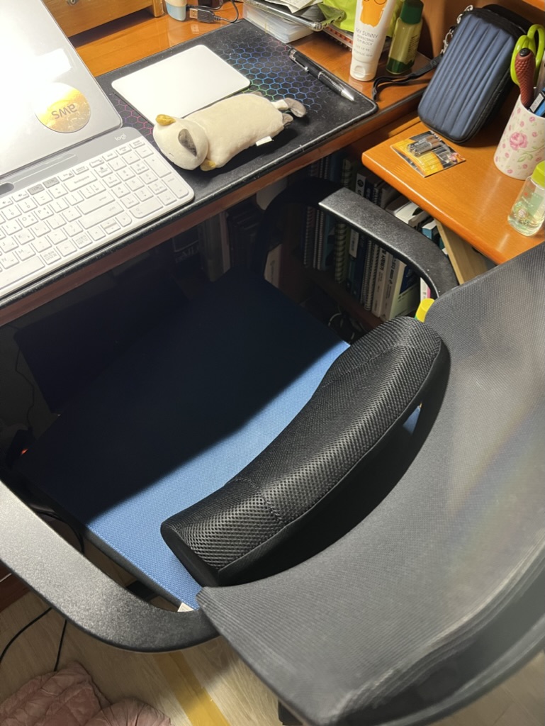 그리고 아주 간혹가다 맥북이 필요할지 모르기때문에 노트북거치대 위에 맥북을 올려서 둔다
