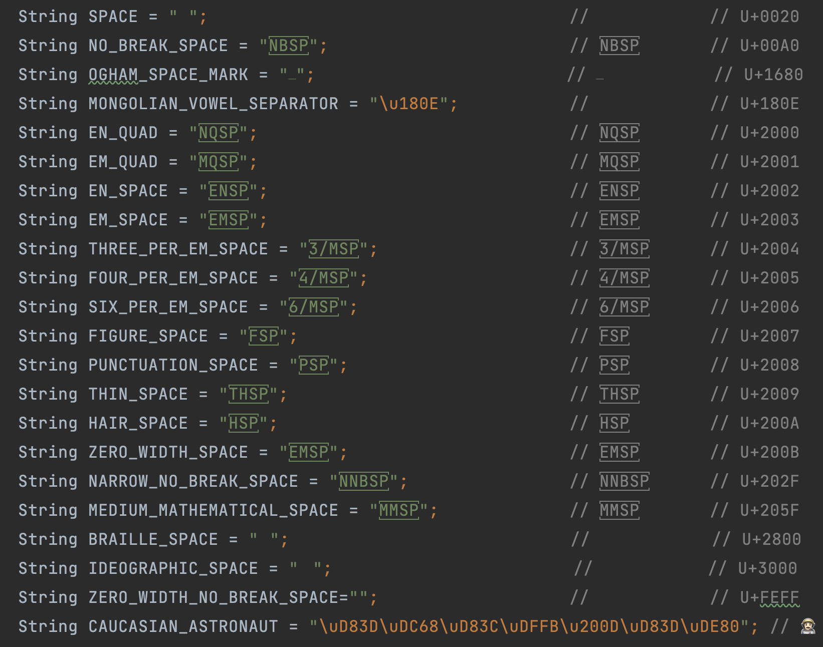 String SPACE = " ";                                    //            // U+0020