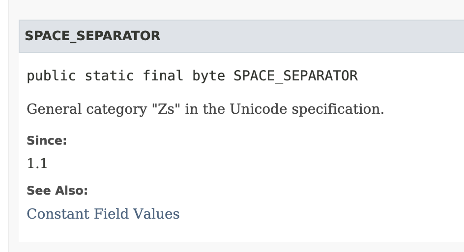 결론은 StringUtils.trimAllWhitespace()를 이용하더라도, 표준 Zs를 이용하더라도 제거되지 않는 공백문자들이 존재한다는 것이다