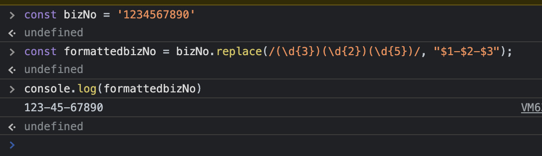 그리고 들어온 문자를 일정한 형식으로 바꾸고 싶을땐 replace와 $를 같이 쓰면 좋다