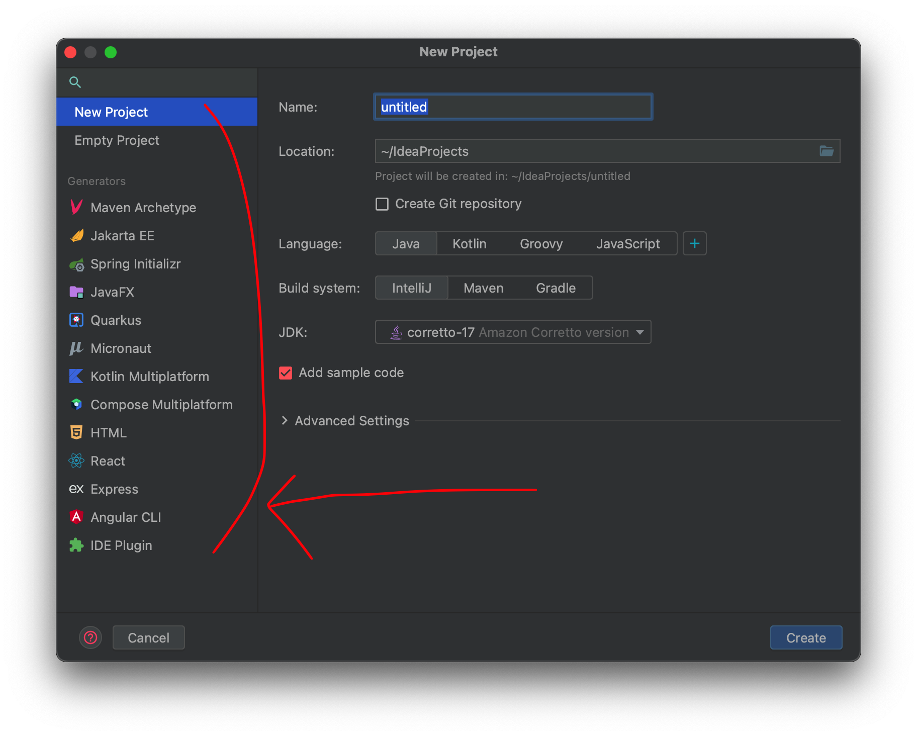 기본적으로 인텔리제이에서 새 프로젝트를 만들면 뷰 프로젝트가 안보인다