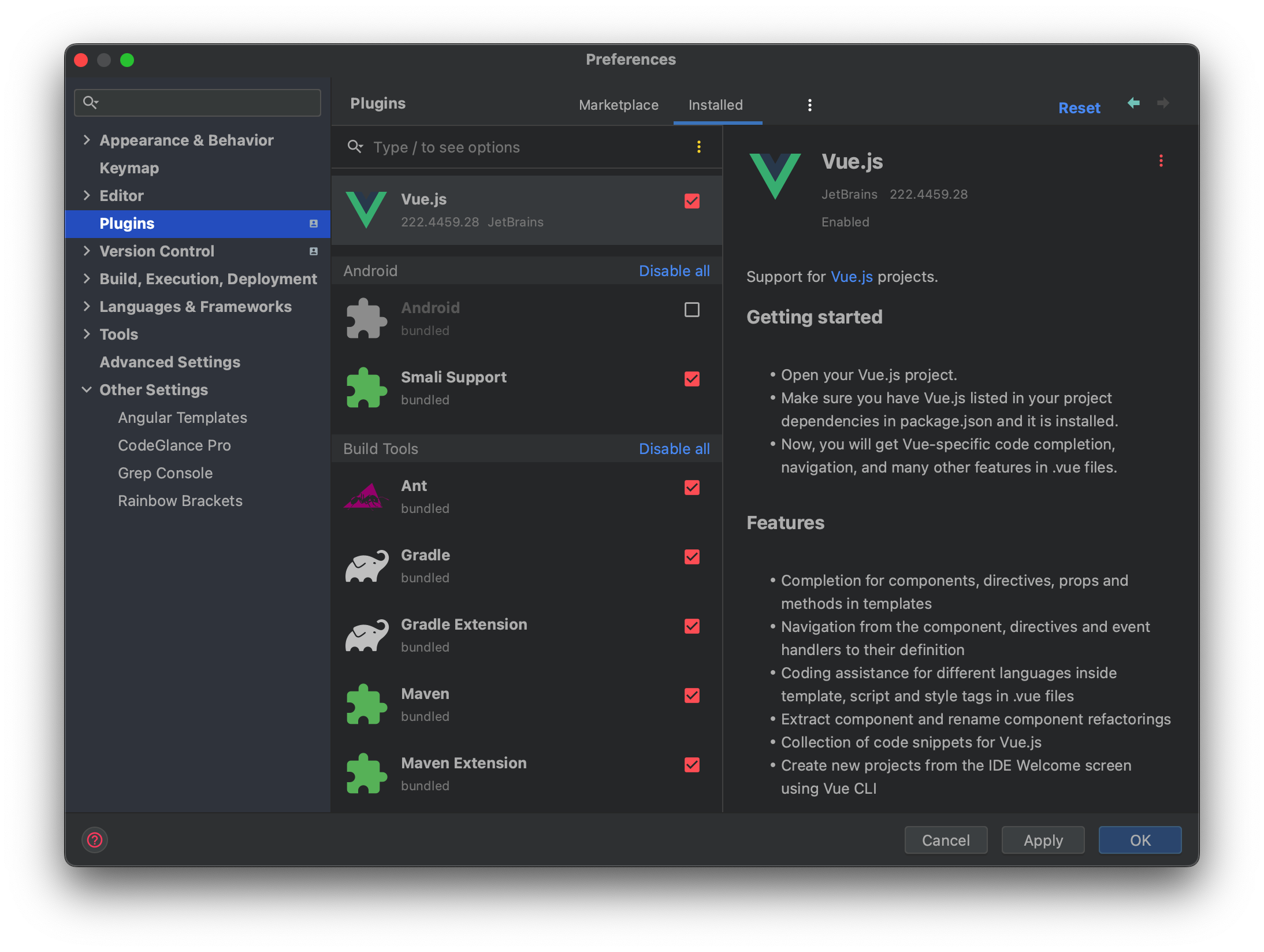 일단 플러그인에서 Vue.js 플러그인을 검색해서 설치하자
