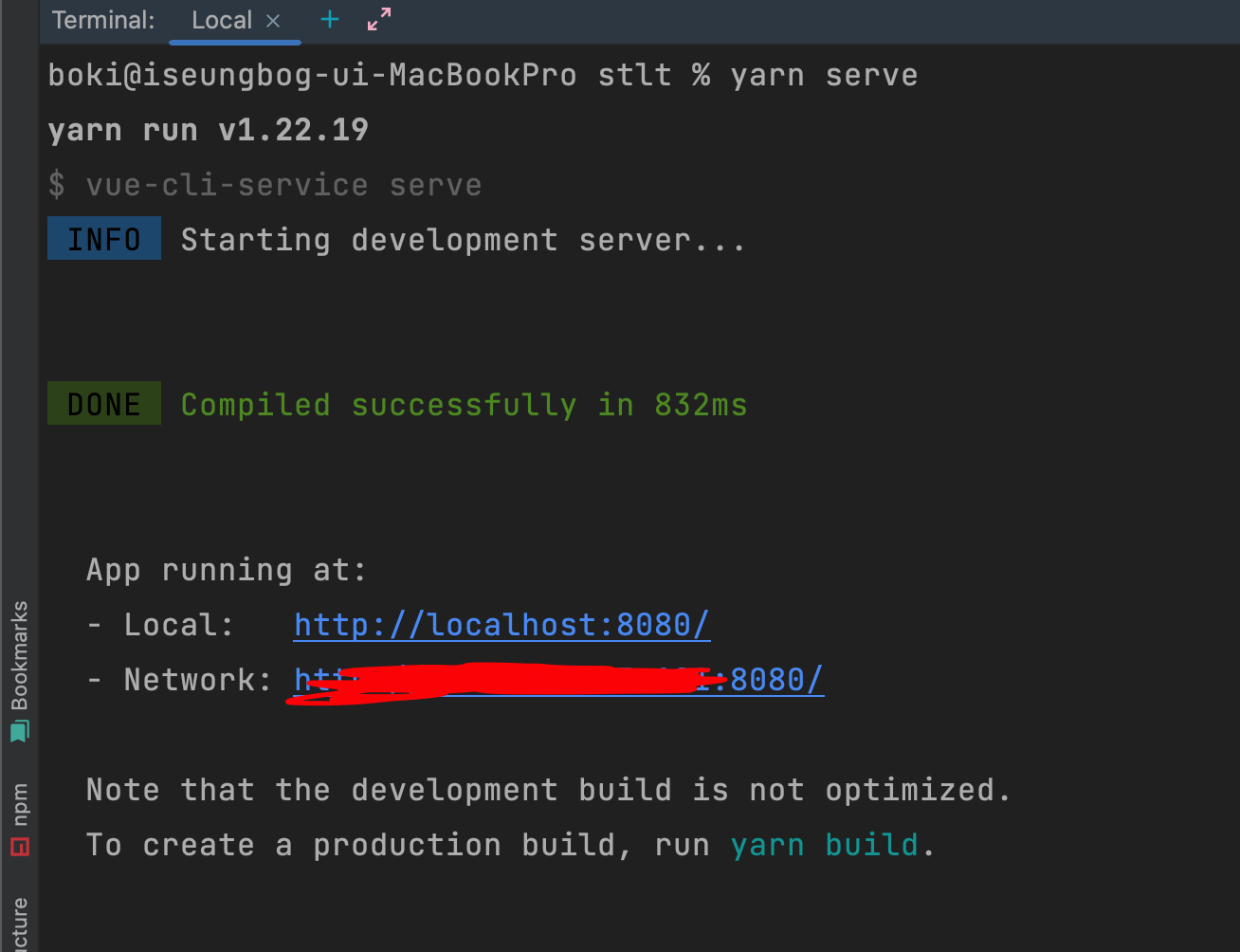 터미널에서 Yarn serve로 실행하라고 안내한다