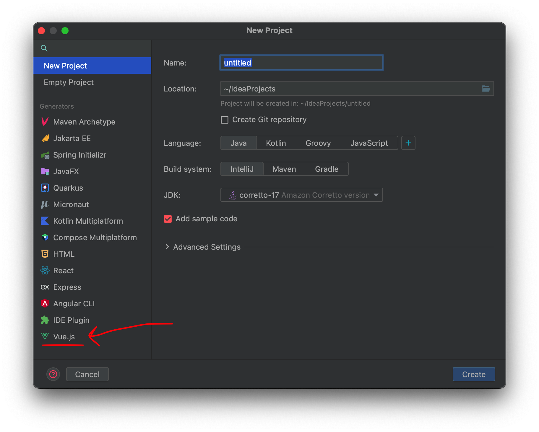 기본적으로 인텔리제이에서 새 프로젝트를 만들면 뷰 프로젝트가 안보인다