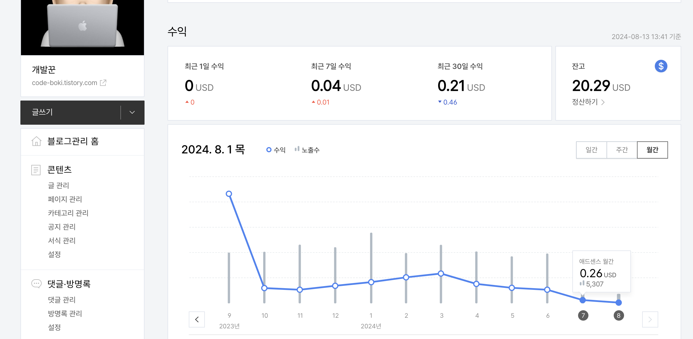 그리고 현재 티스토리로는 크게 이익이 나지 않는 것 같다..