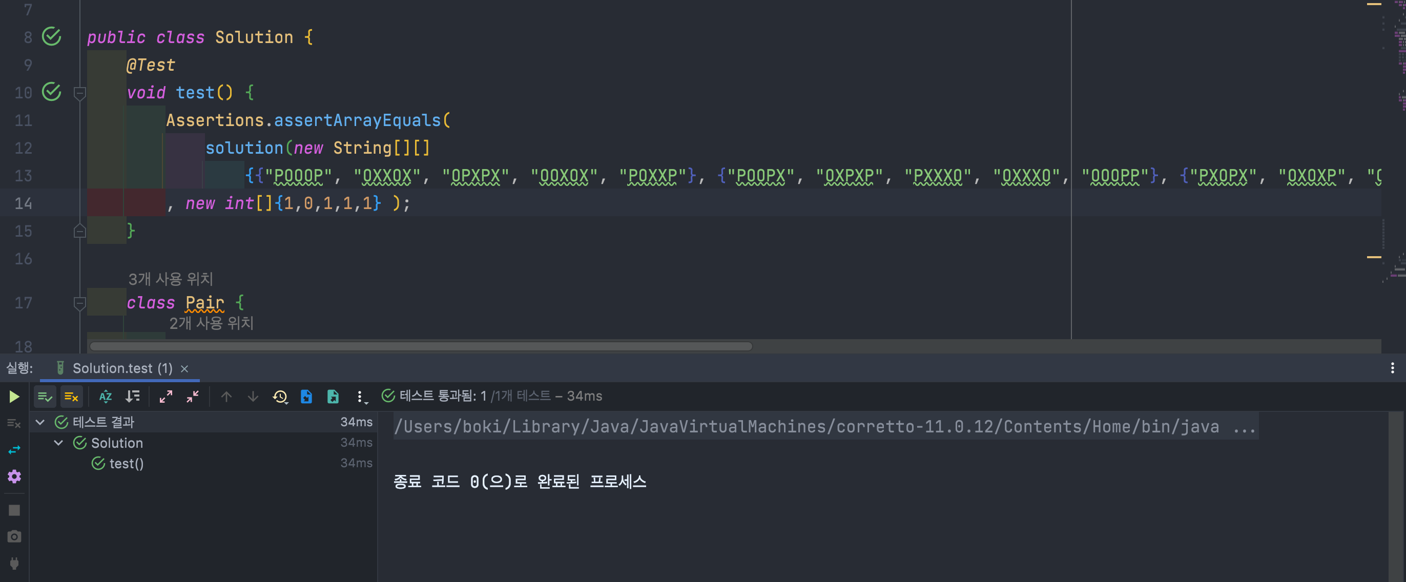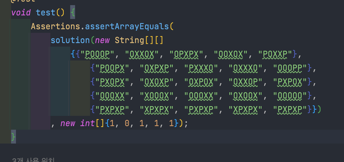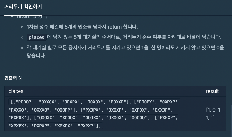 예시 입력값은 프로그래머스의 '거리두기 확인하기'로 정했다