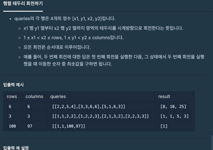 추가로 행렬 테두리 회전하기처럼 입출력 예시가 많다면 한꺼번에 쭈욱쭉쭉쮹